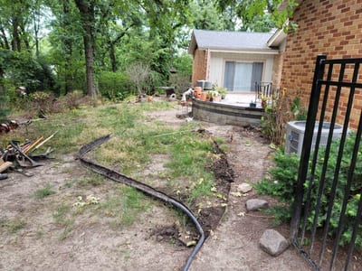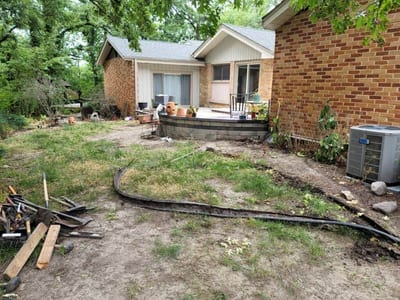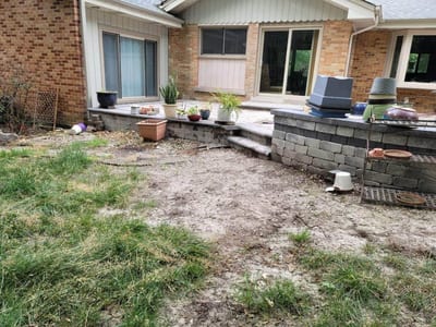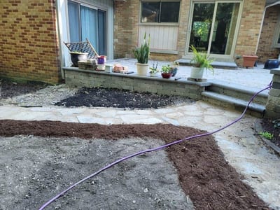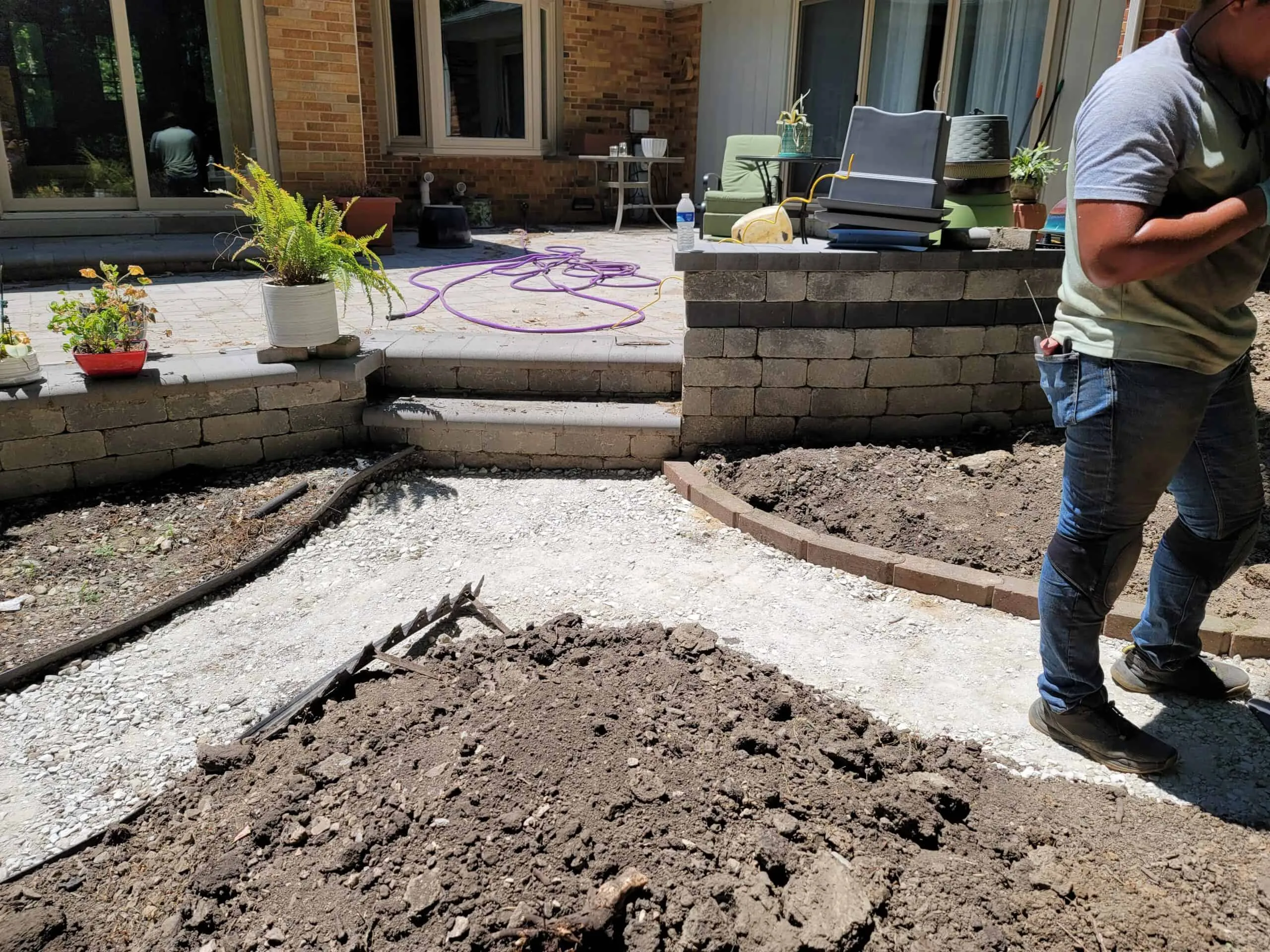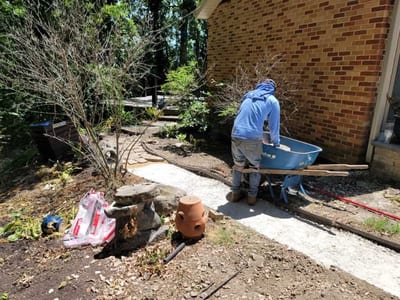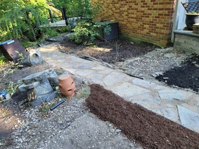 The transformation began with the careful laying of the stone walkway, creating a meandering path from the gate to the patio. The pictures capture the meticulous process of placing each stone, ensuring stability and aesthetic appeal.