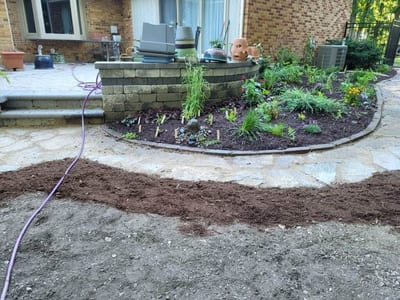Quality soil was added to the designated garden area, preparing the ground for planting. The soil was chosen to support the growth of native plants and flowers, ensuring a thriving garden.