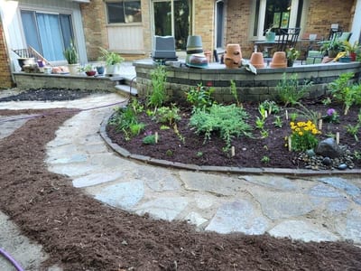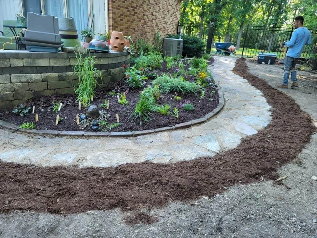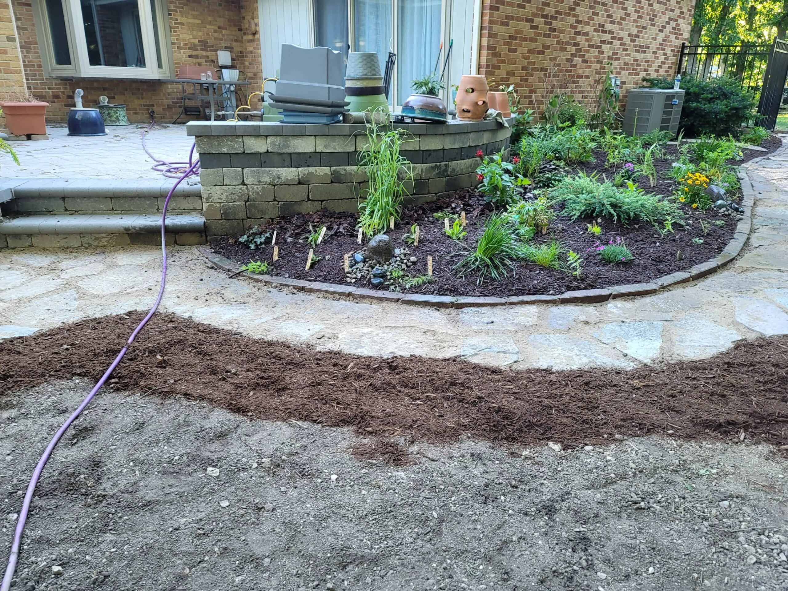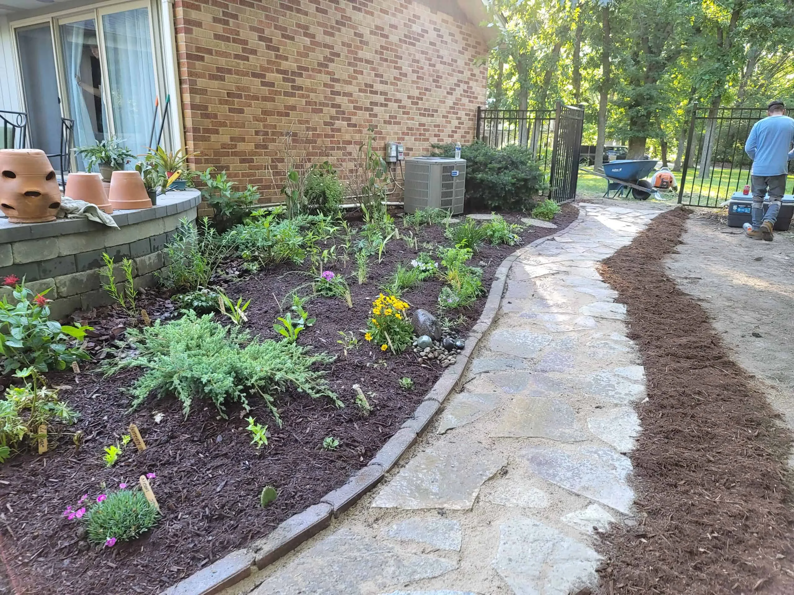 - Objective: To create a native garden that resonates with the local ecosystem, enhanced by a stone walkway and brick border.
