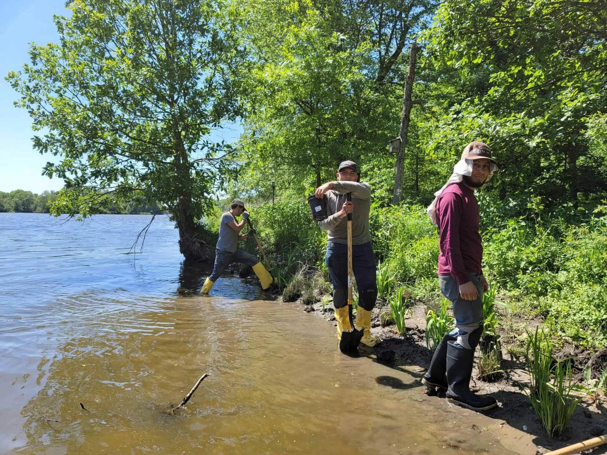 Our skilled landscaping workers, donned in rubber boots and equipped with tools, meticulously carried out the planting process. The project’s unique charm lay in the hands-on approach, with team members wading through shallow waters to plant exactly on the shore. Their commitment to precision and environmental stewardship was evident in every step they took along the river’s edge.